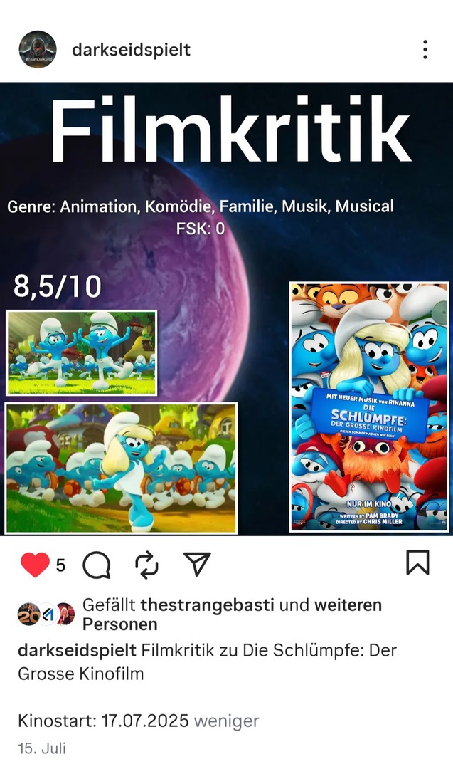Dieser Sommer wird blau, denn kleine Helden treffen auf große Abenteuer! Die mit Abstand beliebtesten blauen Wesen der Welt, die seit Jahrzehnten Fans jeden Alters begeistern, kommen in „Die Schlümpfe: Der große Kinofilm“ zurück auf die Kinoleinwand. Das ist noch lange nicht alles, denn es wird sehr musikalisch… Dafür sorgen nicht nur die musikalischen Synchronsprecher Rihanna und Alvaro Soler sondern auch Rick Kavanian, der gleich in einer Doppelrolle überzeugt und Uwe Ochsenknecht.
