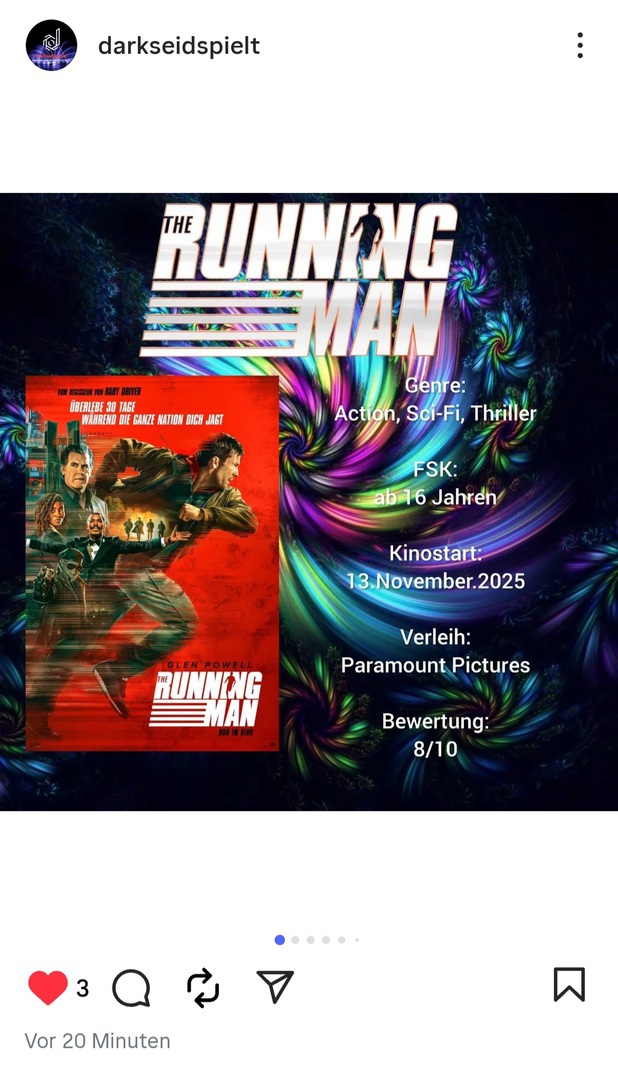 Mit „The Running Man“ steht die nächste Neuverfilmung an. Hier handelt es sich um die Adaption von dem Roman „Menschenjagd“ von 1982. Der Roman wurde bereits in den 80er Jahren verfilmt und zwar mit Arnold Schwarzenegger in der Rolle des Ben Richards. Die damalige Verfilmung genießt nach wie vor Kultstatus. Ob es die Neuauflage schafft an den Kultfilm anzuknüpfen und mindestens genauso erfolgreich zu werden? Das wird sich sehen lassen…